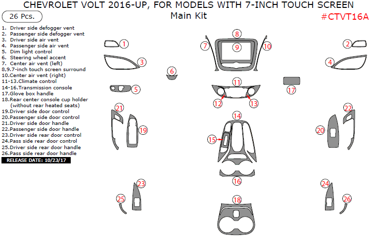 Chevrolet Volt 2016, 2017, 2018, 2019 For Models With 7-Inch Touch Screen, Main Interior Kit, 26 Pcs.