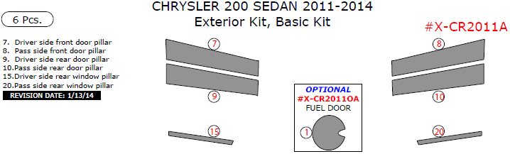 Chrysler 200 2011, 2012, 2013, 2014, Basic Exterior Kit (Sedan Only), 6 Pcs.