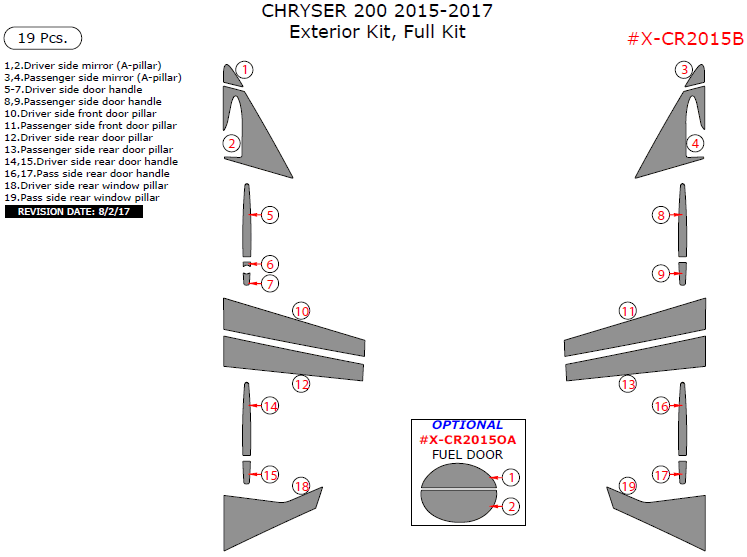 Chrysler 200 2015, 2016, 2017, Exterior Kit, Full Interior Kit, 19 Pcs.