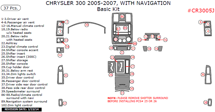 Chrysler 300 2005, 2006, 2007, With Navigation, Basic Interior Kit, 37 Pcs.