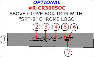 Chrysler 300 2005, 2006, 2007, Interior Kit, Right Hand Drive, Optional Above Glove Box Trim With "SRT-8" Chrome Logo, 7 Pcs.