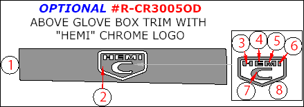 Chrysler 300 2005, 2006, 2007, Interior Kit, Right Hand Drive, Optional Above Glove Box Trim With "HEMI" Chrome Logo, 8 Pcs.