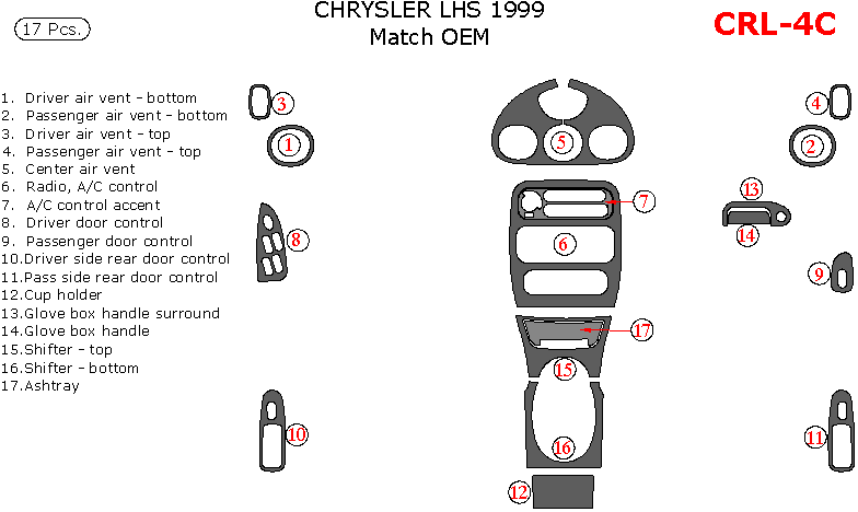 Chrysler LHS 1999, Main Interior Kit, 17 Pcs., Match OEM
