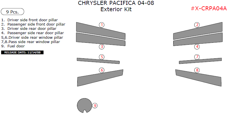Chrysler Pacifica 2004, 2005, 2006, 2007, 2008, Exterior Kit, 9 Pcs.