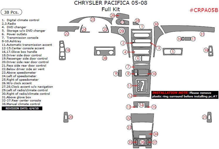 Chrysler Pacifica 2005, 2006, 2007, 2008, Full Interior Kit, 38 Pcs.