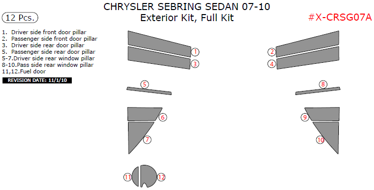 Chrysler Sebring 2007, 2008, 2009, 2010, Exterior Kit (4 Door Only), 12 Pcs.