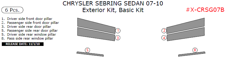 Chrysler Sebring 2007, 2008, 2009, 2010, Basic Exterior Kit (4 Door Only), 6 Pcs.