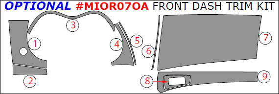 Citroen C-Crosser / Mitsubishi Outlander / Peugeot 4007 2007, 2008, 2009, 2010, 2011, 2012, 2013, Optional Front Dash Trim Kit, 9 Pcs.