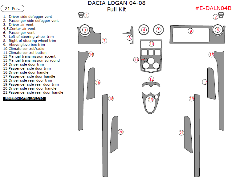 Dacia Logan 2004, 2005, 2006, 2007, 2008, Full Interior Kit, 21 Pcs.