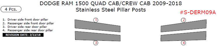 Dodge RAM 1500 Quad Cab/Crew Cab 2009, 2010, 2011, 2012, 2013, 2014, 2015, 2016, 2017, 2018, Stainless Steel Pillar Posts, 4 Pcs.