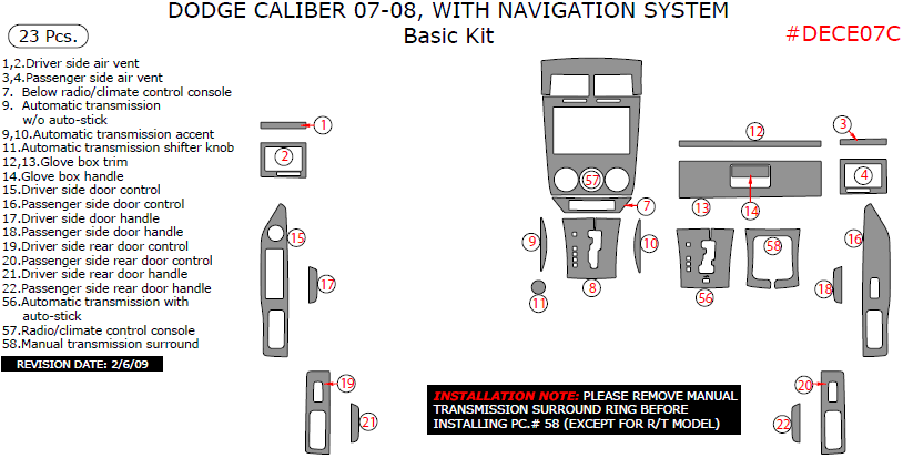 Dodge Caliber 2007-2008, With Navigation System, Basic Interior Kit, 23 Pcs.