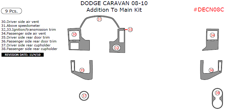 Dodge Caravan 2008, 2009, 2010, Addition To Main Interior Kit, 9 Pcs.