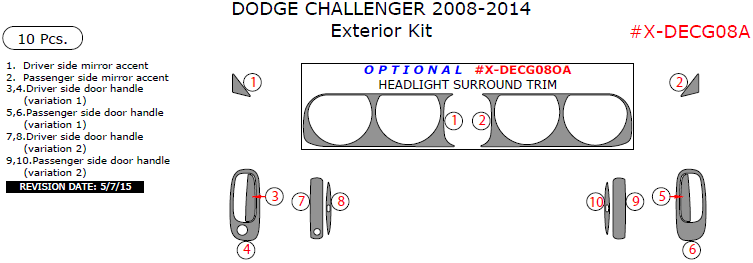 Dodge Challenger 2008, 2009, 2010, 2011, 2012, 2013, 2014, Exterior Kit, 10 Pcs.