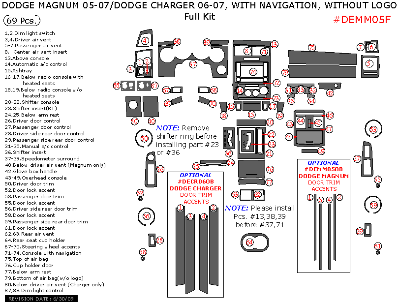Dodge Charger 2006-2007 / Magnum 2005-2007, With Navigation, Without "Magnum" Logo, Full Interior Kit, 69 Pcs.