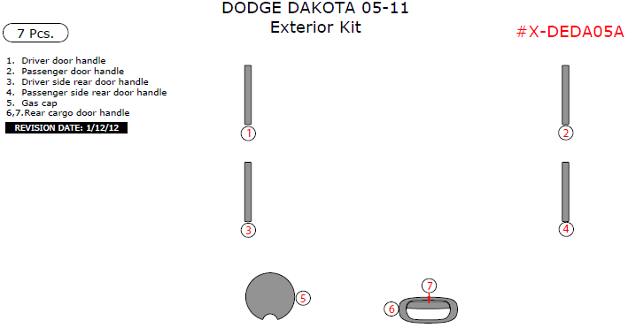 Dodge Dakota 2005, 2006, 2007, 2008, 2009, 2010, 2011, Exterior Kit, 7 Pcs.