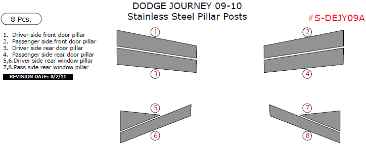 We offer a wide variety of colors and materials of Dodge Journey 2009-2010, Stainless Steel Pillar Posts, 8 Pcs. Choose your favourite option and place an order.