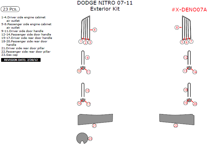 Dodge Nitro 2007, 2008, 2009, 2010, 2011, Exterior Kit, 23 Pcs.