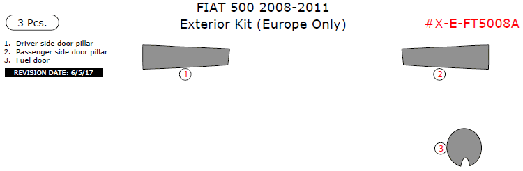 Fiat 500 2008, 2009, 2010, 2011, Exterior Kit (Europe Only), 3 Pcs.