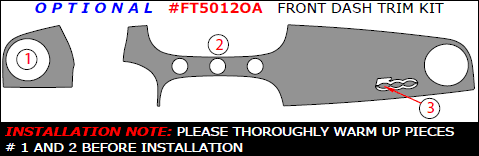 Fiat 500 2012, 2013, 2014, 2015, Optional Front Interior Dash Kit, 3 Pcs.