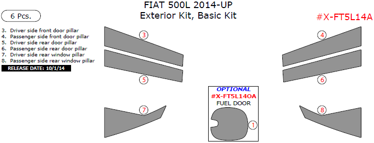 Fiat 500L 2014, 2015, 2016, 2017, Basic Exterior Kit, 6 Pcs.