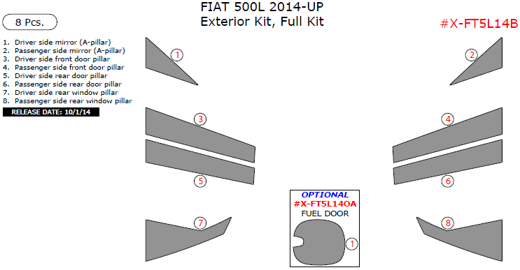 Fiat 500L 2014, 2015, 2016, 2017, Exterior Kit, Full Interior Kit, 8 Pcs.