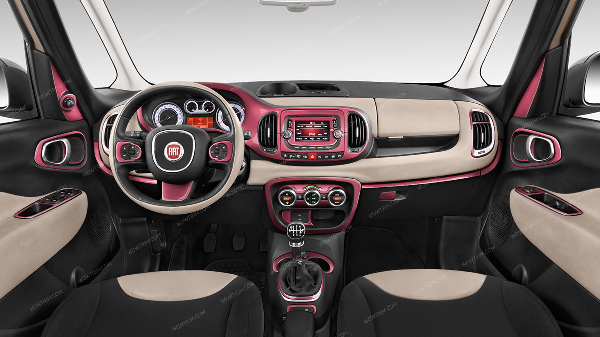 We offer full interior dash kit of 39 pieces in a wide variety of colors (red, black, etc.) and materials (carbon fiber and others) for Fiat 500L 2014, 2015, 2016, 2017, with 5 inch touch screen. Choose your favourite option of the 2014-2017 Fiat 500L interior accessory and place an order to buy the high quality dash trim kit.