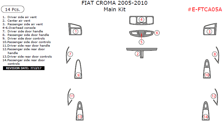 Fiat Croma 2005, 2006, 2007, 2008, 2009, 2010, Main Interior Kit, 14 Pcs.