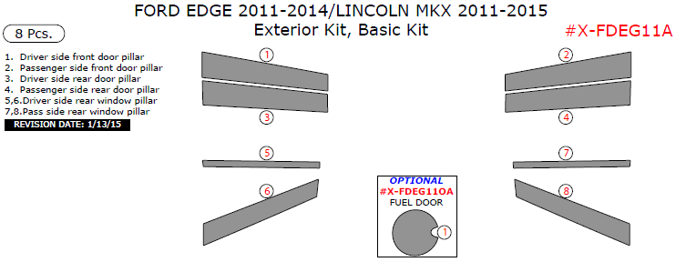 Ford Edge 2011, 2012, 2013, 2014, Lincoln MKX 2011, 2012, 2013, 2014, 2015, Basic Exterior Kit, 8 Pcs.