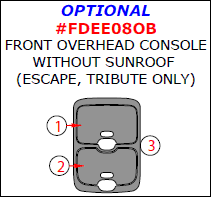 Ford Escape 2008, 2009, 2010, 2011, 2012, Mazda Tribute 2008, 2009, 2010, 2011, Interior Kit, Optional Front Overhead Console Without Sunroof (Escape, Tribute Only), 3 Pcs.