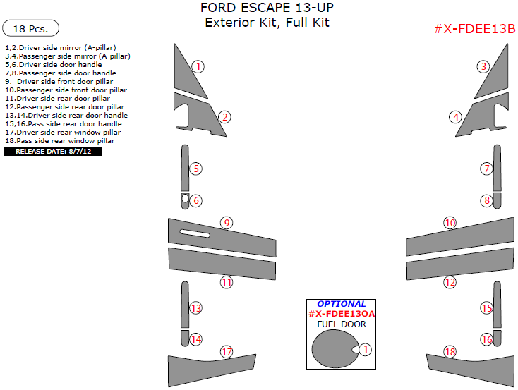 Ford Escape 2013, 2014, 2015, 2016, 2017, 2018, 2019 Exterior Kit, Full Interior Kit, 18 Pcs.
