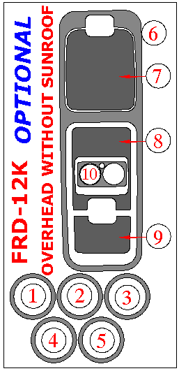 Ford Expedition 2003, 2004, 2005, 2006, NON-EDDIE BAUER EDITION, Overhead Console Interior Kit, Without Sunroof, 10 Pcs.