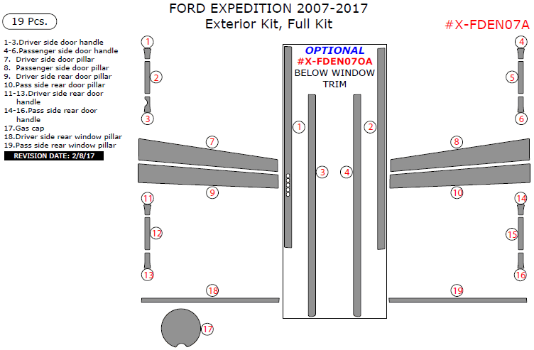 Ford Expedition 2007, 2008, 2009, 2010, 2011, 2012, 2013, 2014, 2015, 2016, 2017, Exterior Kit, Full Interior Kit, 19 Pcs.