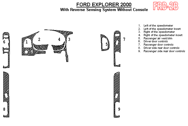 Ford Explorer 1997, 1998, 1999, 2000, 2001, With Reverse Sensing System, Basic Interior Kit, 4 Door, 9 Pcs.