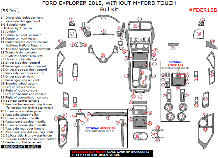 Ford Explorer 2015, Without MyFord Touch, Full Interior Kit, 55 Pcs.