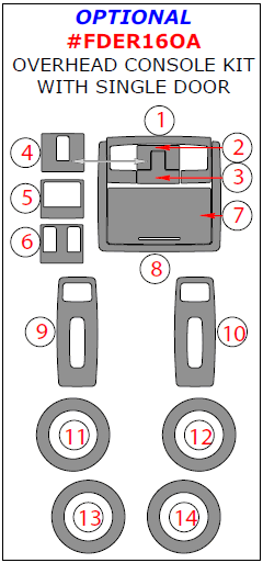 Ford Explorer 2016, 2017, Optional Overhead Console Interior Kit With Single Door, 14 Pcs.