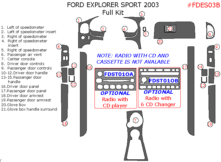 Ford Explorer Sport 2003, Full Interior Kit, 21 Pcs.