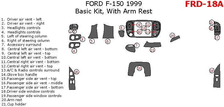 Ford F-150 1999, Extended Cab, Basic Interior Kit, With Arm Rest, 21 Pcs.