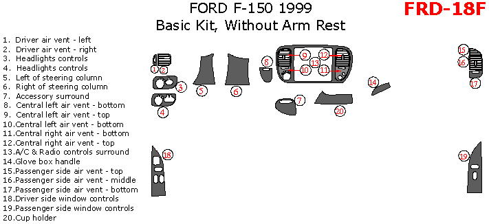 Ford F-150 1999, Basic Interior Kit, Without Arm Rest, 20 Pcs.
