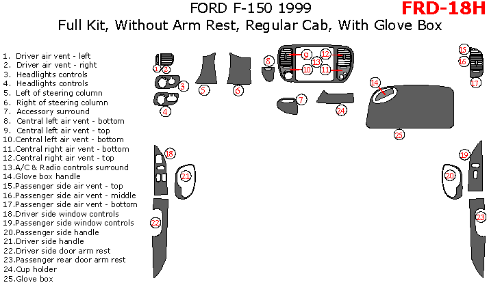 Ford F-150 1999, Regular Cab, Full Interior Kit, Without Arm Rest, Regular Cab, With Glove Box, 25 Pcs.