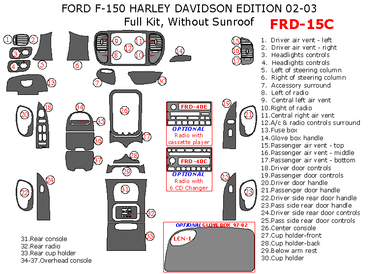 Ford F-150 2002-2003, Harley Davidson Edition, Full Interior Kit, Without Sunroof, 37 Pcs.