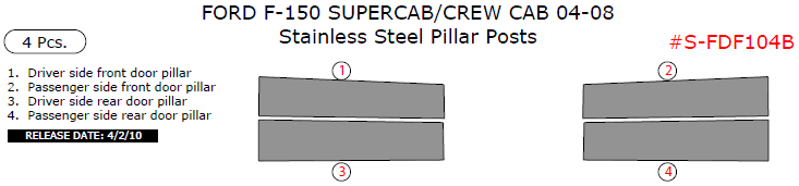 Ford F-150 SuperCab/Crew Cab 2004, 2005, 2006, 2007, 2008, Stainless Steel Pillar Posts, 4 Pcs.