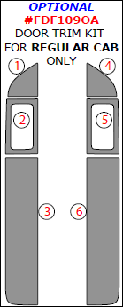 Ford F-150 2009, 2010, 2011, 2012, 2013, 2014, Optional Door Interior Trim Kit For Regular Cab Only, 6 Pcs.