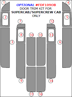 Ford F-150 2009, 2010, 2011, 2012, 2013, 2014, Optional Door Interior Trim Kit For SuperCab/SuperCrew Cab Only, 16 Pcs.