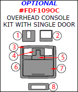 Ford F-150 2009, 2010, 2011, 2012, 2013, 2014, Interior Kit, Optional Overhead Console Interior Kit With Single Door, 8 Pcs.