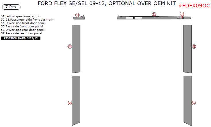 We offer a wide variety of colors and materials of Ford Flex 2009, 2010, 2011, 2012, Optional Over OEM Interior Kit (SE/SEL Only), 7 Pcs. Choose your favourite option and place an order.