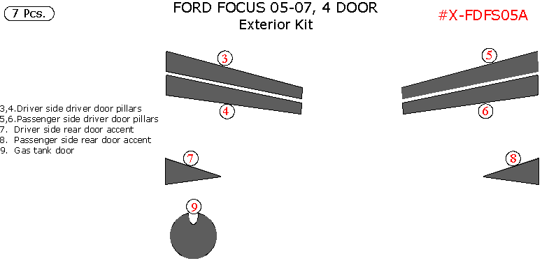 Ford Focus 2005, 2006, 2007, 4 Door, Exterior Kit, 7 Pcs.