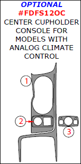 Ford Focus 2012, 2013, 2014, Interior Kit, Optional Center Cupholder Console For Models With Analog Climate Control, 3 Pcs.