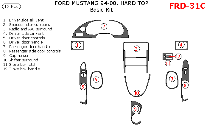 Ford Mustang 1994, 1995, 1996, 1997, 1998, 1999, 2000, Hard Top, Basic Interior Kit,12 Pcs.