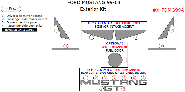 Ford Mustang 2001, 2002, 2003, 2004, Exterior Kit, 4 Pcs.