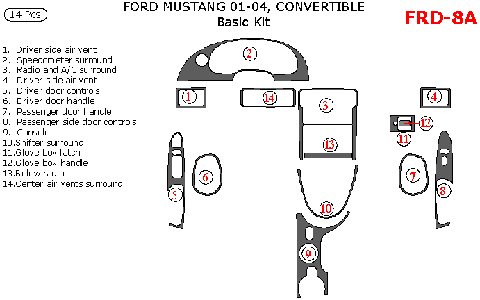 Ford Mustang 2001, 2002, 2003, 2004, Convertible, Basic Interior Kit, 14 Pcs.